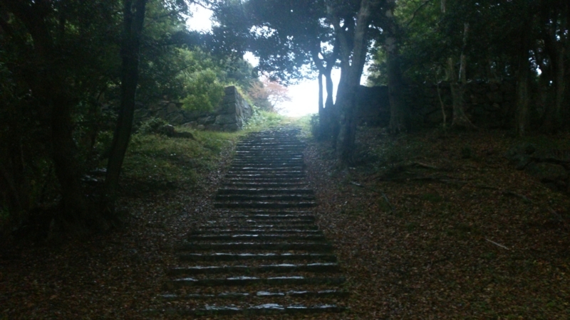 本丸は標高90メートルの山頂にあるんですがこの薄暗い中を一人で登るのはちょっと怖かったです