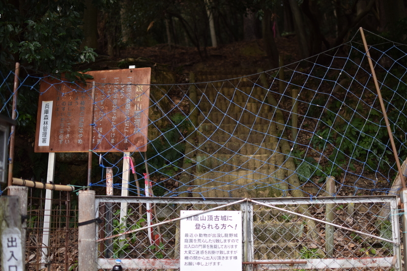 これがその山頂の城趾の入口なのですが結構急だという情報を得たので登城断念。昔は多少きつくても登ったんですが子供連れてるのと歳で最近は全然です。